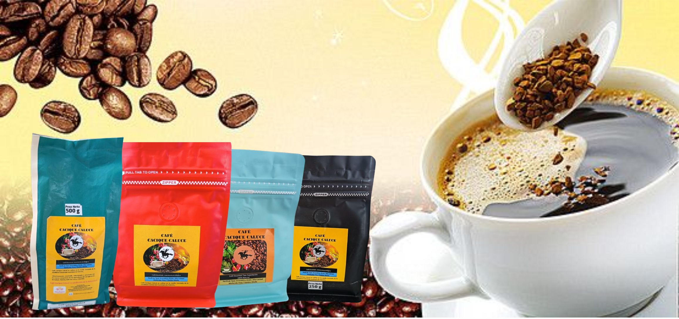 - Café Cacique Calucé es el reflejo de una tradición arraigada en el corazón de la media montaña del corregimiento de Calucé, Palmira, Colombia. Este café es cultivado y procesado por manos campesinas, herederas de generaciones dedicadas a la agricultura, quienes han perfeccionado el arte de producir un café excepcional, honrando la tierra que los rodea.